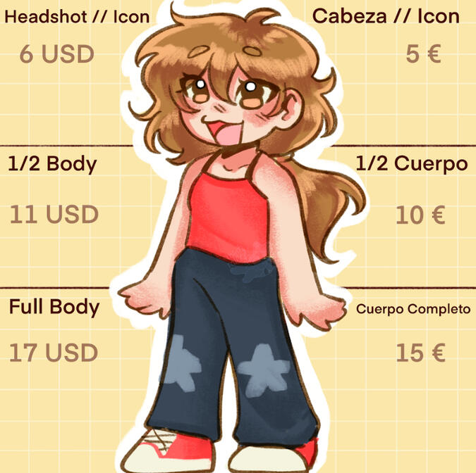 I will start a commission at the time payment is made, but it is also important to understand who comes first in order of arrival. All of this will be indicated in the QUEUE // LISTA section.Prices are NOT debatable. If the price is haggled, I will have the right to decline the commission.
